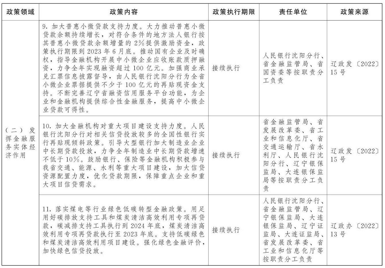 1.加大普惠小微贷款投放力度。人民银行安排再贷款再贴现额度不少于700亿元,促进支农支小贷款投放,全省普惠小微贷款增速不低于10%。普惠小微企业贷款延期还本付息原则上最长可延至2023年6月30日。(牵头单位:人民银行沈阳分行)