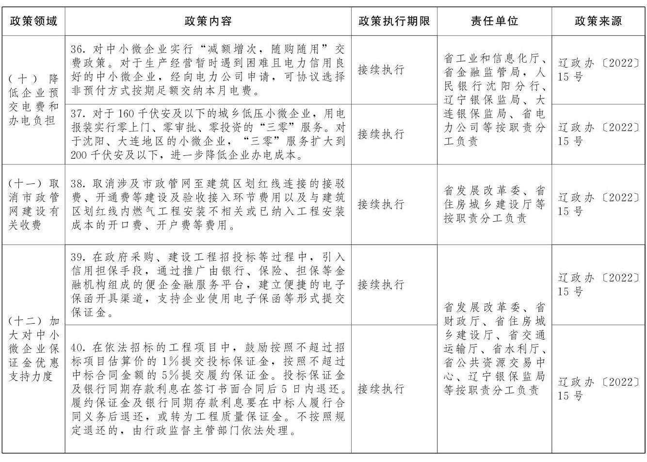 23.降低企业用水用电用气成本。持续深化水电气办理审批改革,重点推进水电气联合报装和“一网通办”,不断提升供水供电供气稳定可靠性和企业群众服务体验。对生产经营困难的小微企业和个体工商户用水用电用气实施6个月“欠费不停供”,6个月的缓缴期间免收欠费滞纳金,每户企业可享受一次,政策执行期限至2023年12月31日。(牵头单位:省住房城乡建设厅、省营商局)